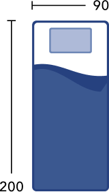 Seit 2 Wochen schafe ich auf dem Topper 90x200 , die Größe stimmt , er verrutscht gar nicht und es liegt sich gemütlich. Richtig gut.